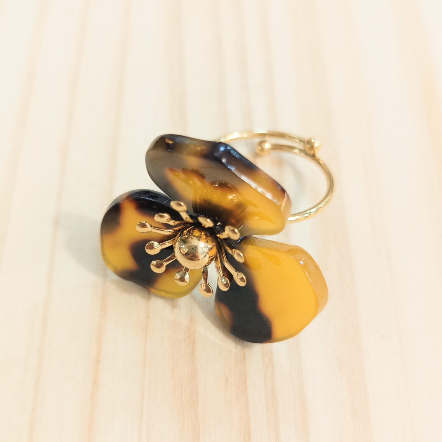 Anillo ajustable Flor relieve (dorado)