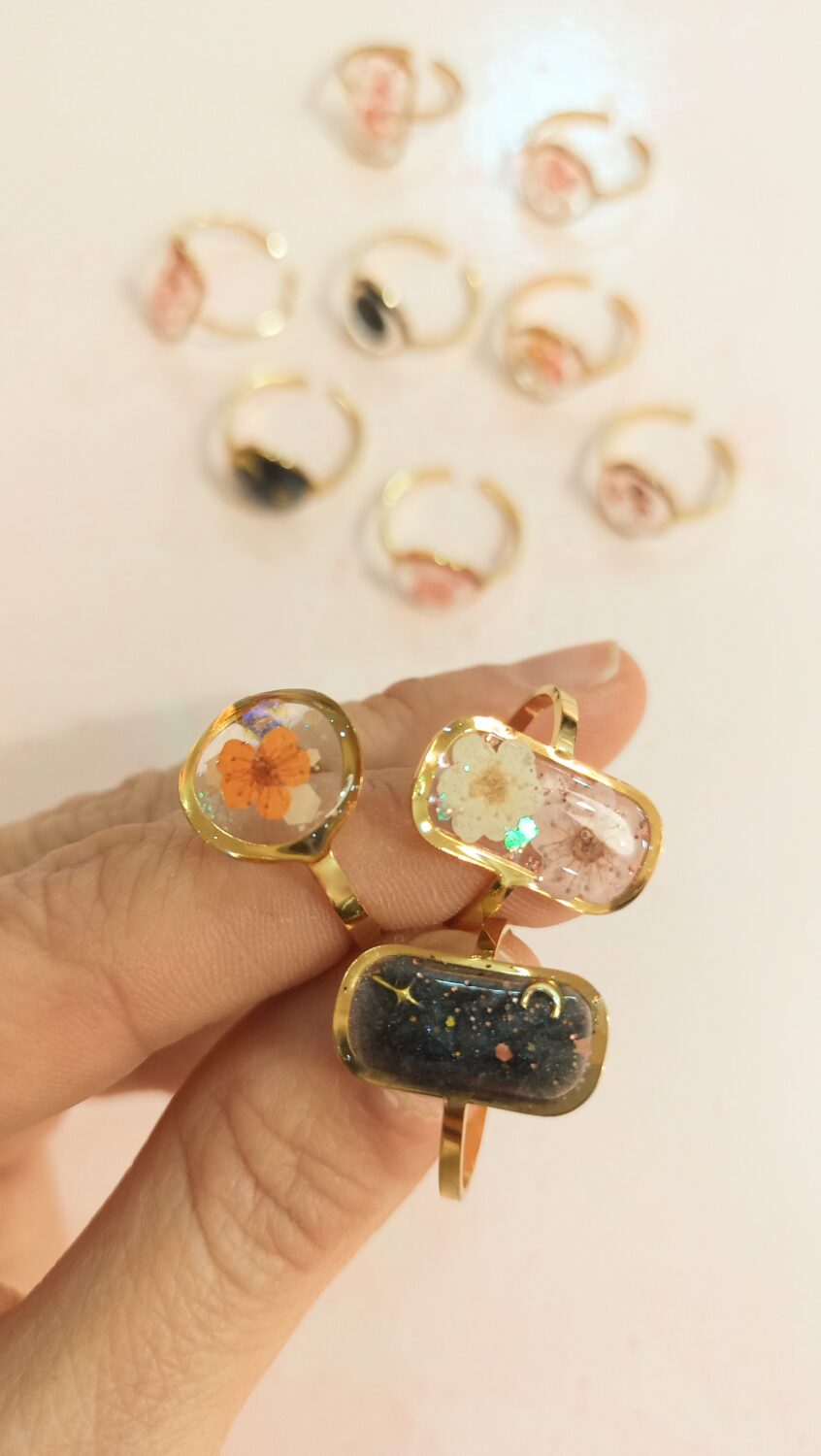 Anillo resina circular flores - Imagen 2