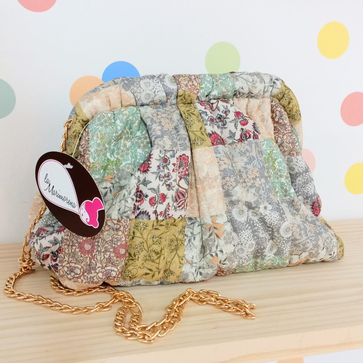 Bolso precioso de tela con cierre imantado.