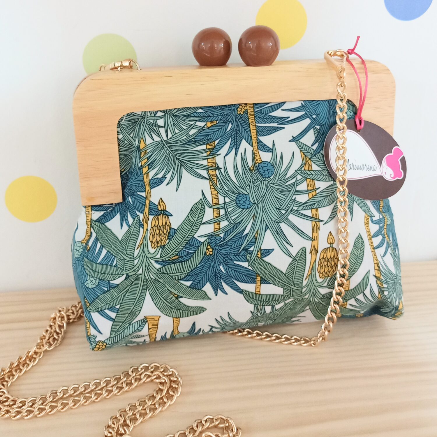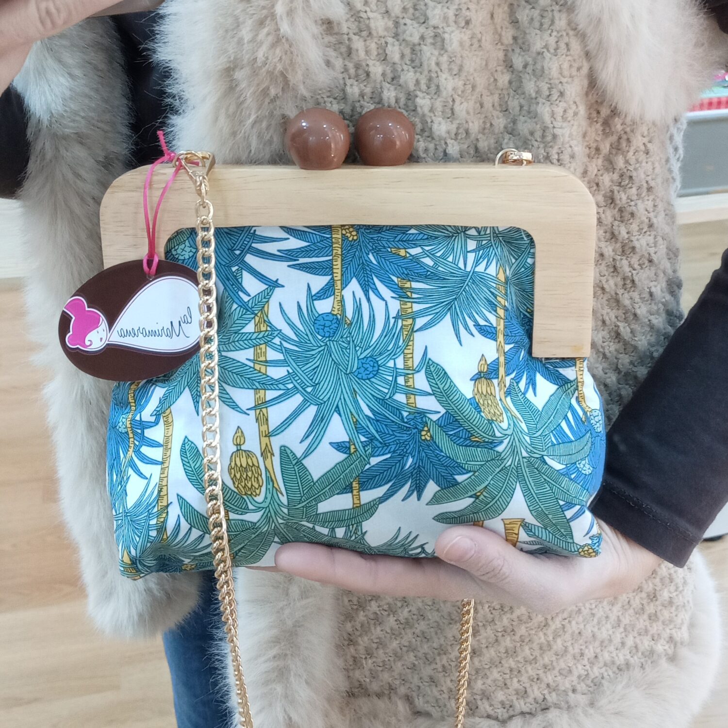 Bolso hebilla madera Costa Rica (palmeras)