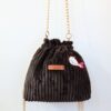 Nuevos bolsos confeccionados a mano y diseñados con cariño para esta nueva temporada. No imaginas lo suavita que es la tela de pana, cosidos a mano con guata interior para que el bolso tenga mas cuerpo y resistencia. Las asas son de cadena con mosquetones en los laterales para que puedas quitarlos y sustituir el asa por otra de tela o cuero cuando prefieras.