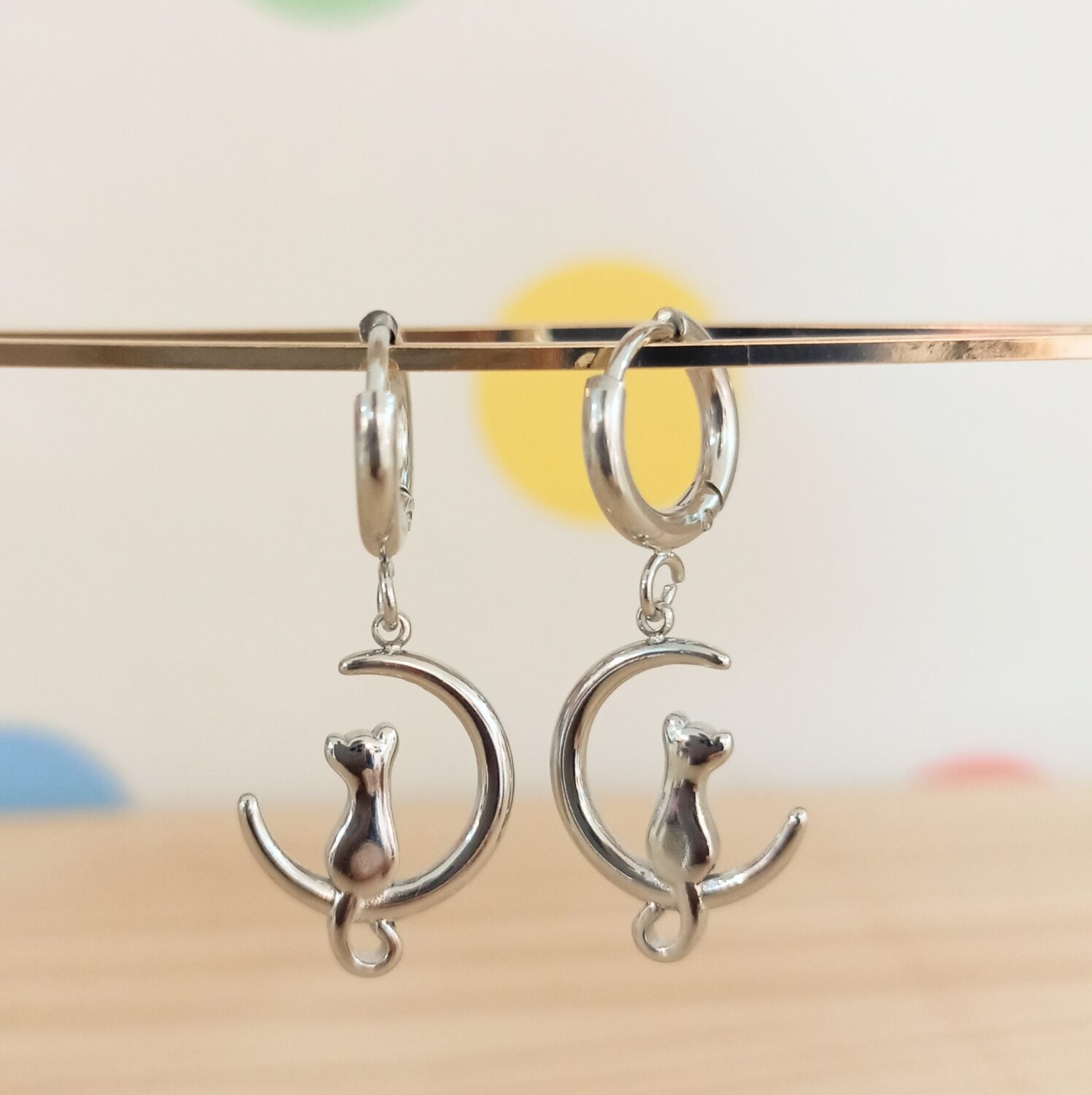 Pendientes gato luna (plateado)