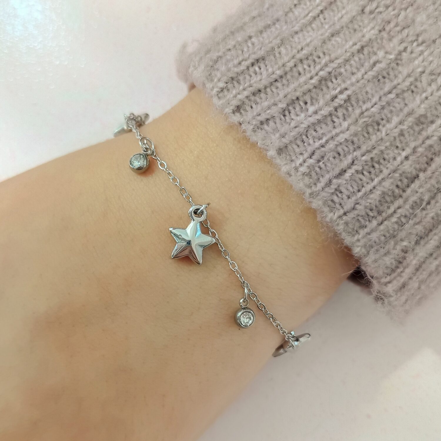 Pulsera ajustable estrellas/brillantes (plateado) - Imagen 2